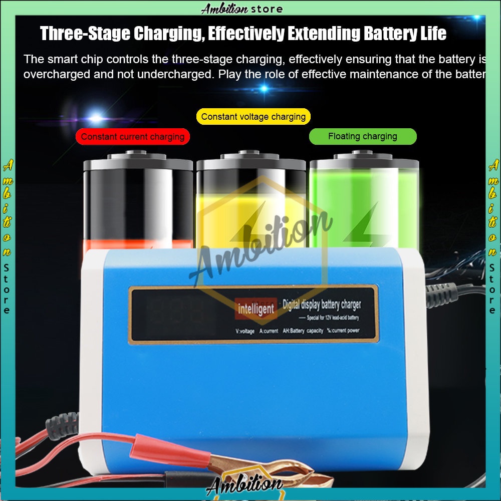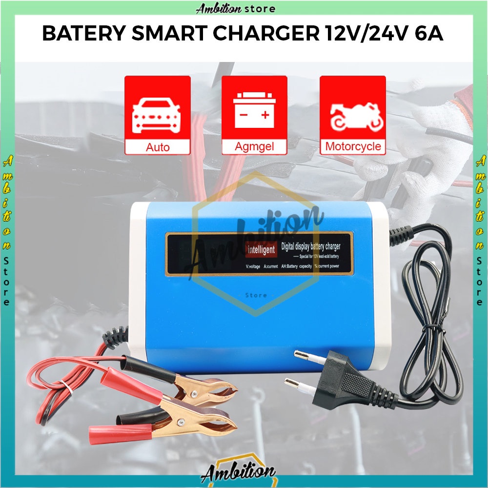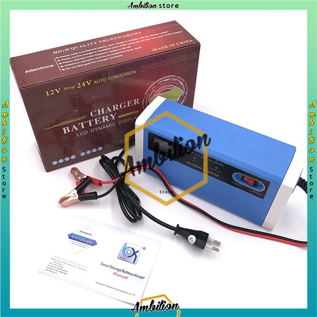 CHARGER AKI MOBIL MOTOR LEAD ACID 12-24V 10A WITH LCD - UD21 - BLUE