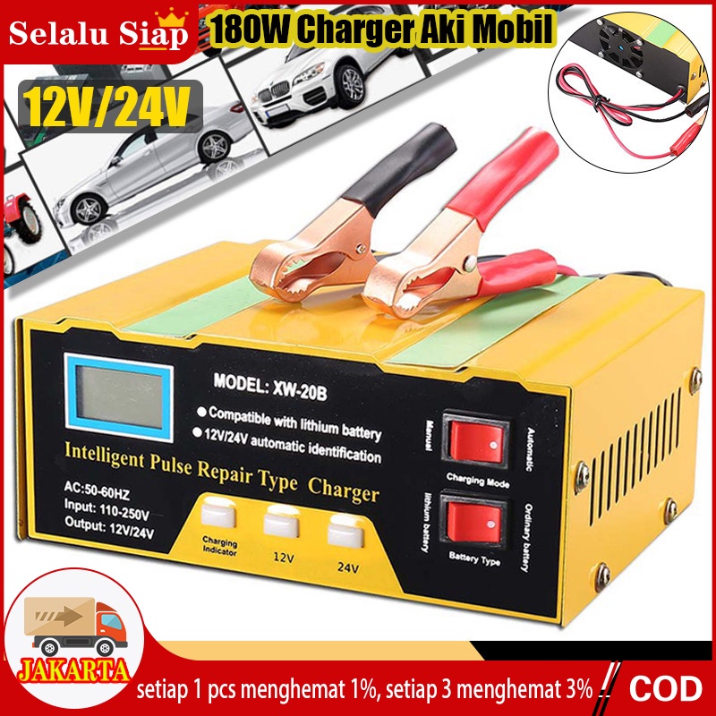 12V 24V CHARGER AKI MOBIL MOTOR TRUCK KAPAL ELEKTRIK OTOMATIS 6-105AH 180W