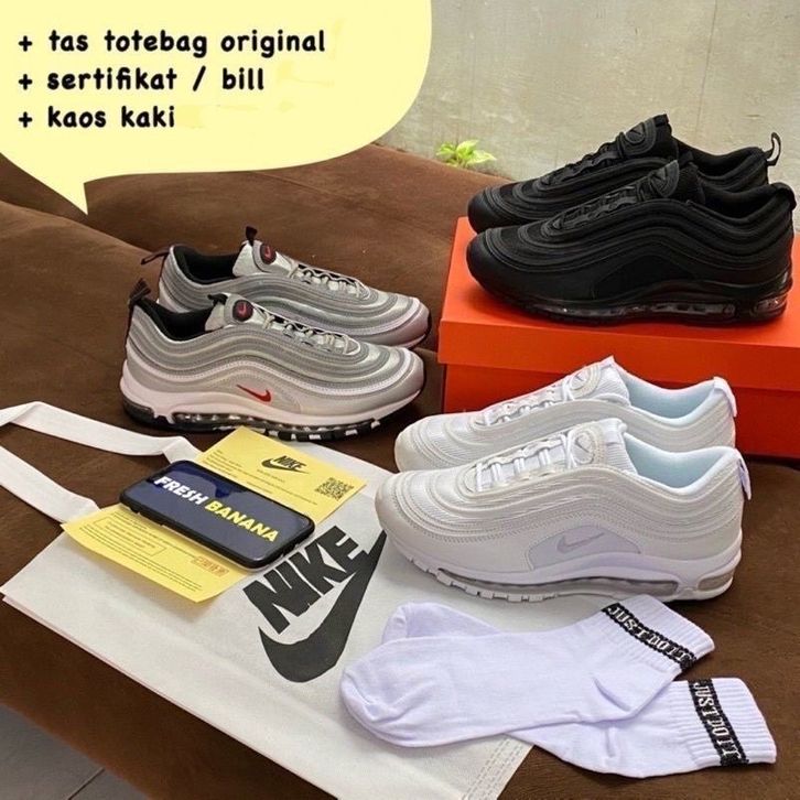 Sepatu Air Max 97 Airmax Full All Rush Pink Triple Black White Undefeated Red Silver BU--LLet Hitam