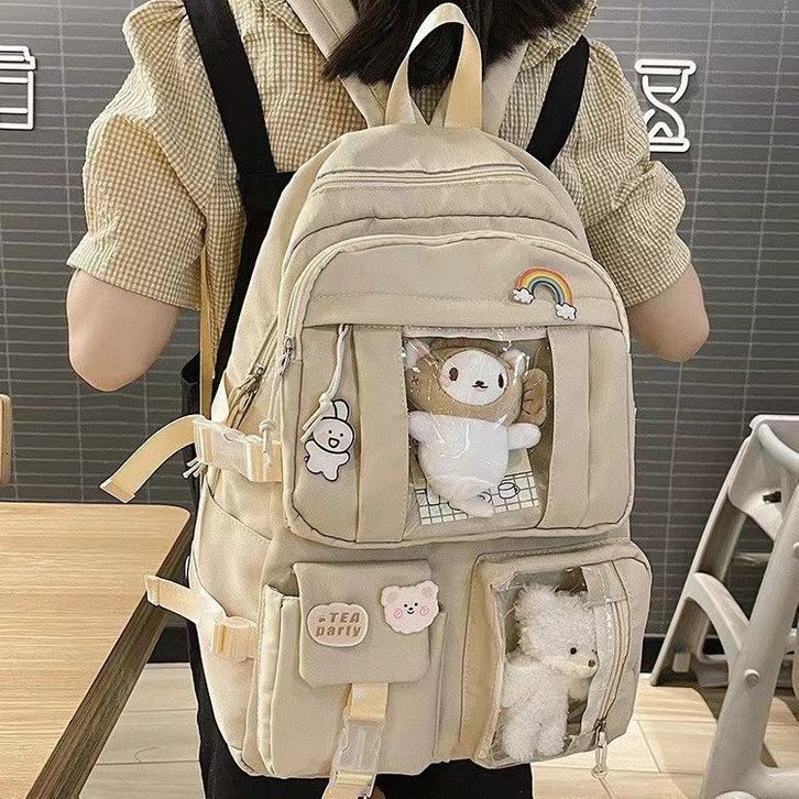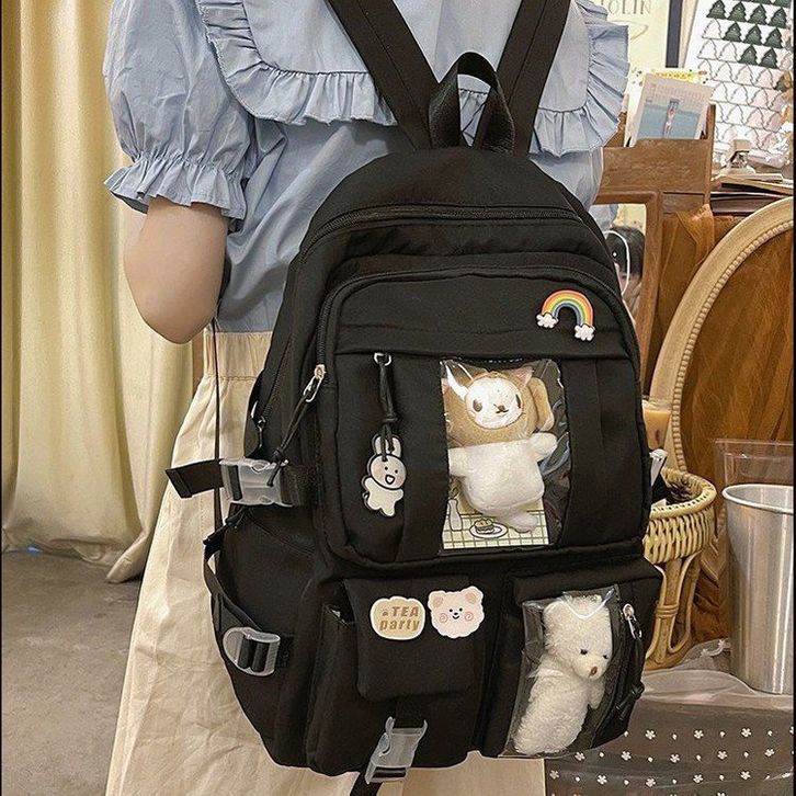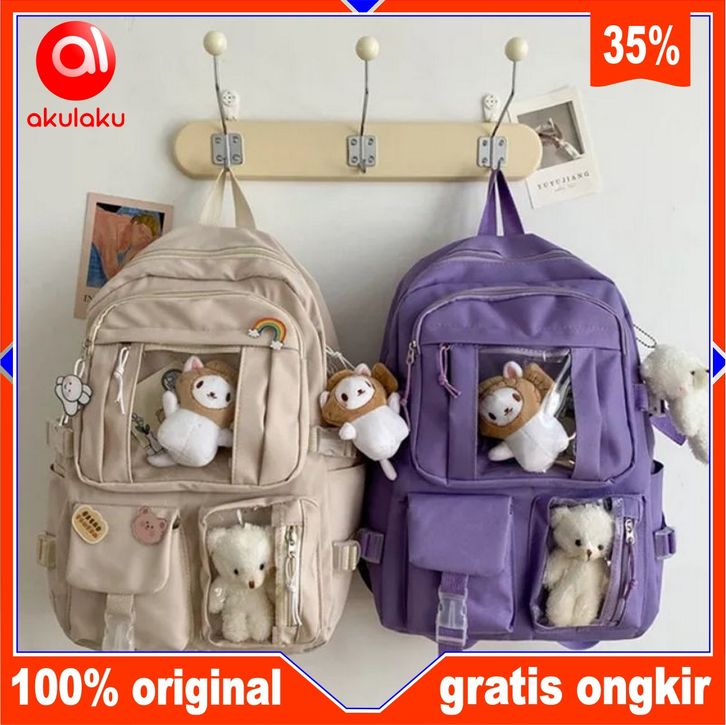 Tas Ransel sekolah anak SD SMP SMA dengan 2 boneka dan pin hiasan size besar muat banyak Minipetite BA2207