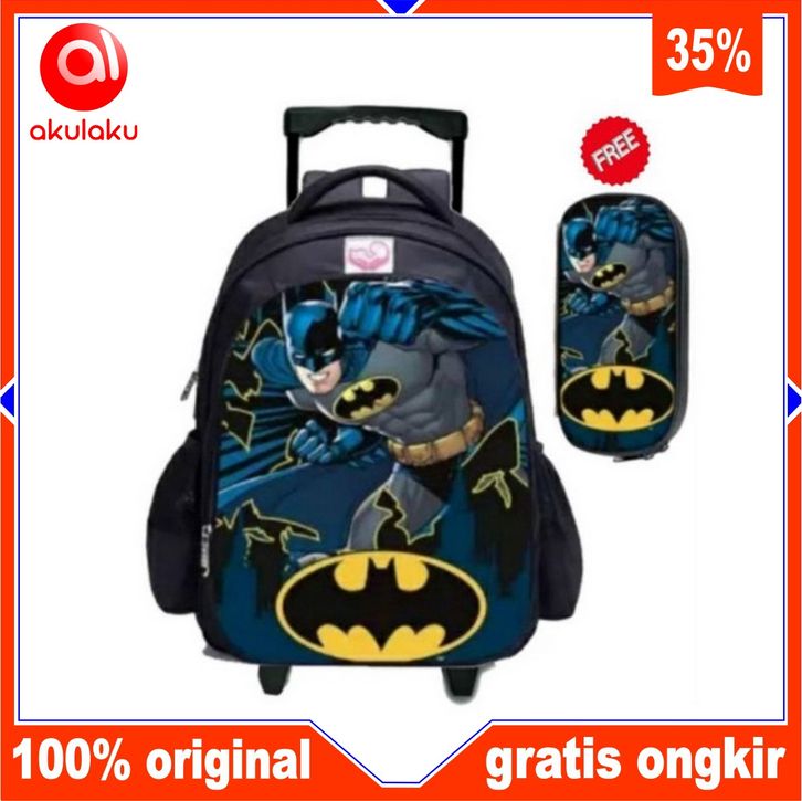 Tas troli anak COWOK TK 2in1 bisa Roda dan Ransel tas Roda Anak free pouch
