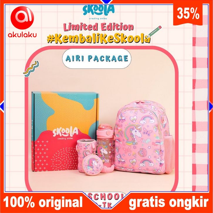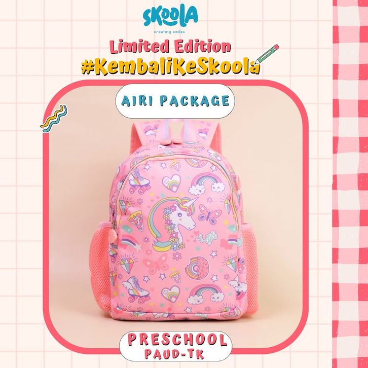 Skoola Special Package Tas Sekolah Anak Perempuan Laki Laki PAUD TK Ransel Botol Minum Airi