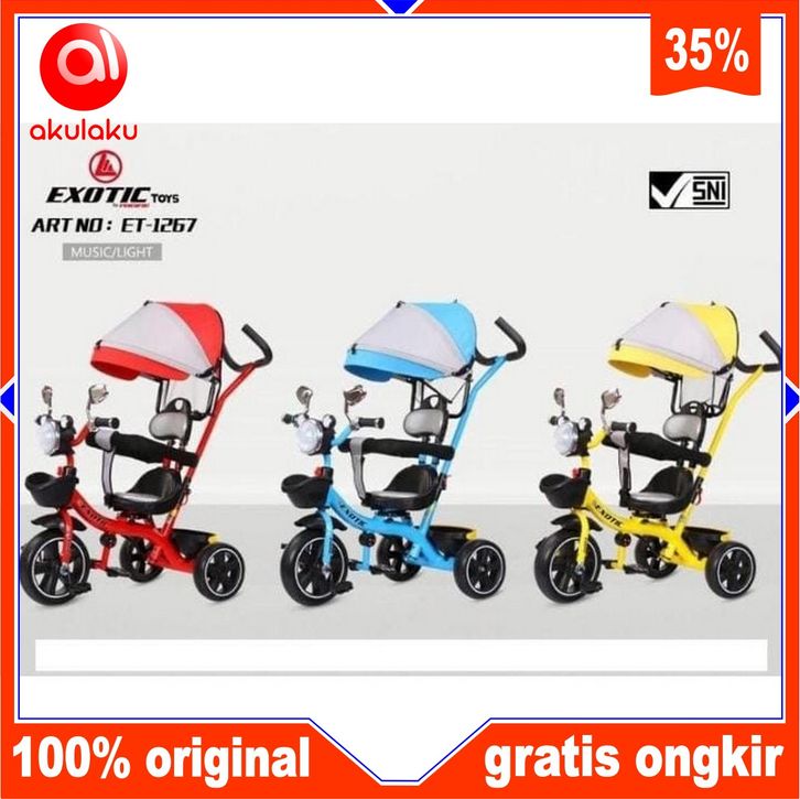 sepeda anak roda tiga 3 kereta dorong Exotic AT 7711, ET 1267 dan ET 7067 ada Musik dan Lampu Dorongan anak bayi