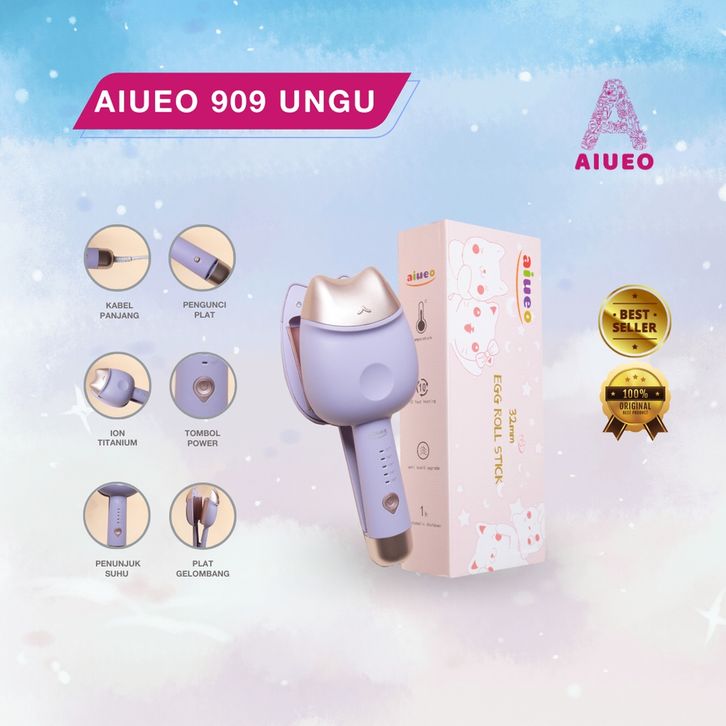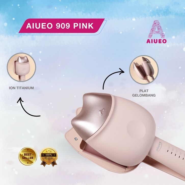 Catokan Rambut Curly 909 Wave Mermaid Egg Roll | Alat Catok Gelombang Korean Wave - Warna Ungu - Pink
