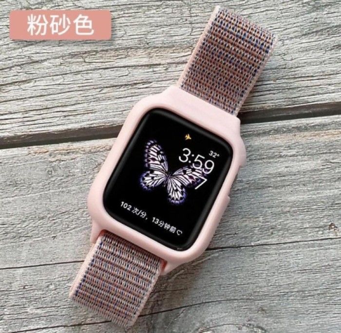 Strap Casing Bumper Full Protection Nylon Smart Watch Iwo T500 T55 F10 - Pink Sand
