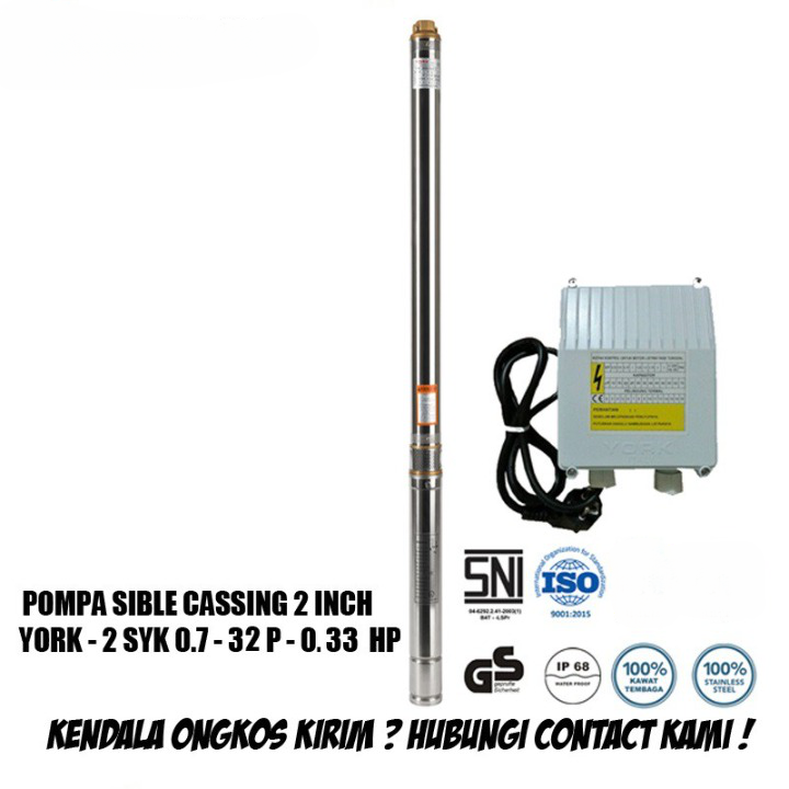 POMPA SUMUR DALAM POMPA SUBMERSIBLE CELUP SUMUR BOR 2 INCH YORK 2 SYK 07 32P 033 HP 220 V SUBMERSIBLE