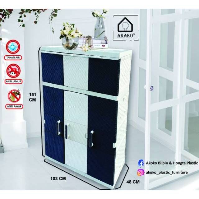 JUMBO LEMARI PLASTIK AKAKO ELEGANT 3 PINTU KACA A3G 1.4 PREMIUM LEMARI GANTUNG KACA FULL KUNCI