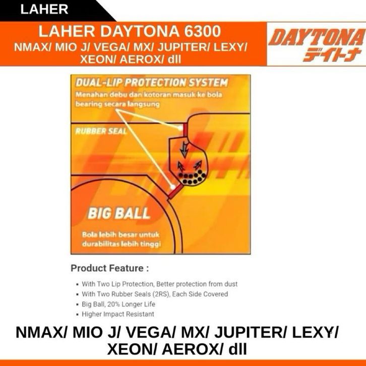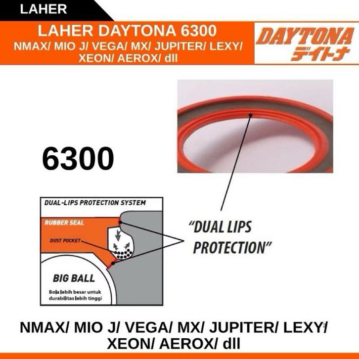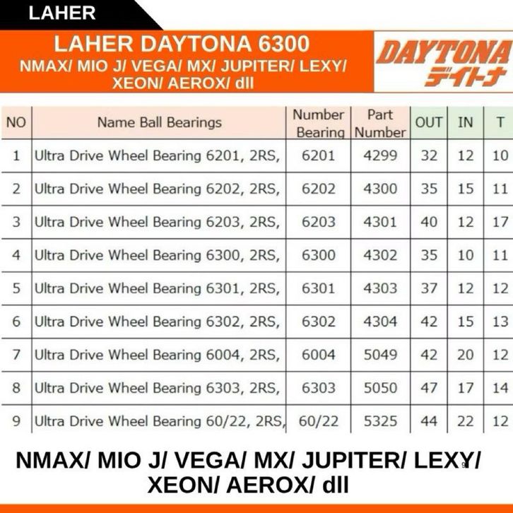 LAHER RODA 6300-2RS NMAX/MIO J/M3/XEON/VEGA/JUPITER/MX/LEXY/dll ORIGINAL DAYTONA 4302