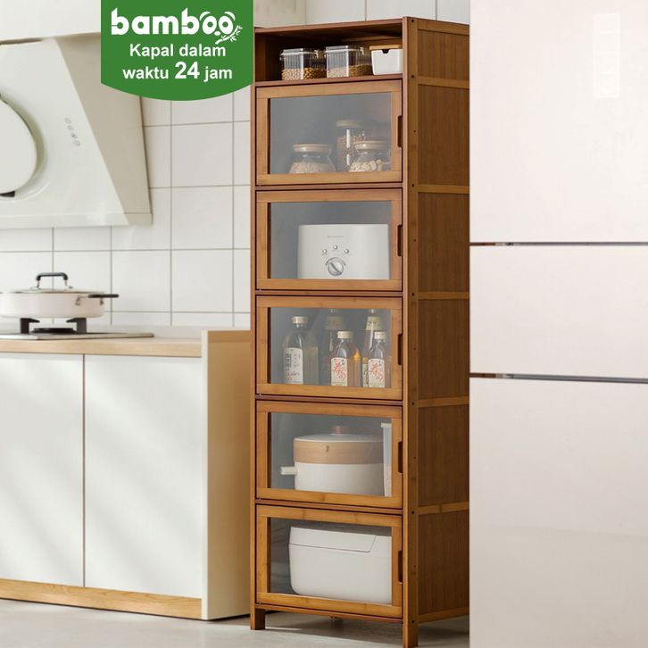 Rak Kayu Serbaguna Bamboo Rak Buku Lemari Kayu Serbaguna Anti Debu Lemari Pajangan Rak Dapur Serbaguna Murah