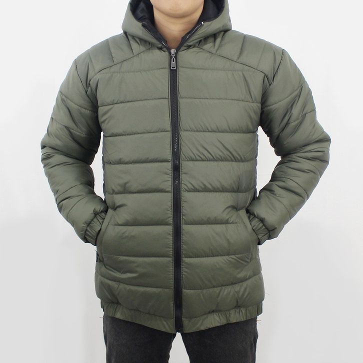 JAKET PUFFER TEBAL PRIA SIZE M L XL XXL - JAKET WINTER - JAKET PARASUT TEBAL PRIA - JAKET GUNUNG PRIA HIJAU ARMY