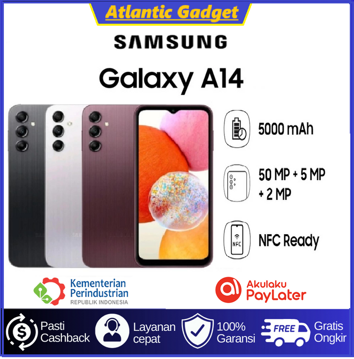 Hp Samsung Galaxy A14 RAM 6/128GB Garansi Resmi | Exynos 850 Irit Daya | 50MP Triple Kamera | Baterai 5000mAh 15W | NFC