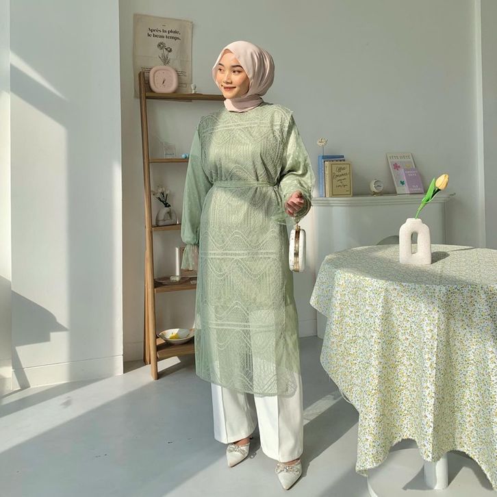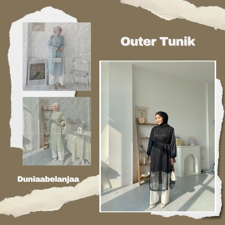 Outer Tunik Brukat Wanita Hava Bahan Tile Dot Free Tali Terlaris