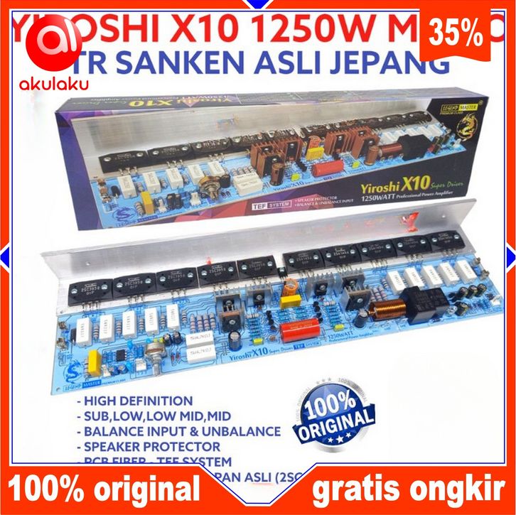 KIT POWER YIROSHI X10 1250W TEF SYSTEM X 10 X10 PLUS TR SANKEN ASLI 2SA1494 2SC3858 MONO AMPLI PLUS PROTECTOR SPEAKER BA