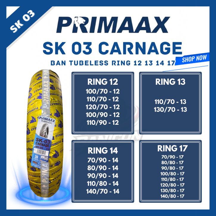 [Star] BAN TUBELESS PRIMAX PRIMAAX SK 03 CARNAGE RING 12 13 14 17 VARIO BEAT MIO SCOOPY SUPRA JUPITER