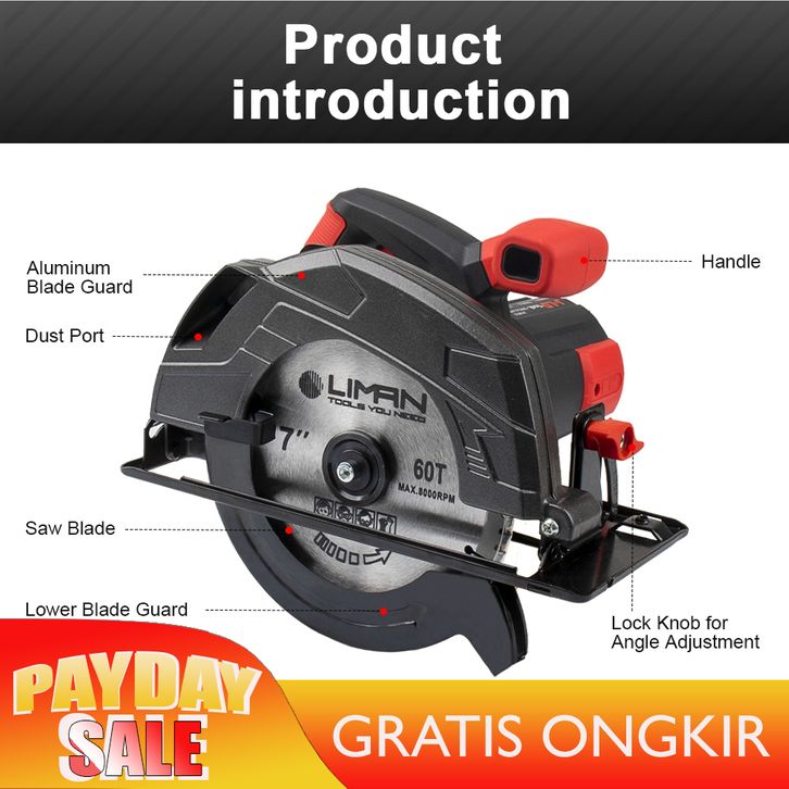 CICILAN/ JLD Circular Saw Gergaji Kayu Listrik 900W Circular Saw 7 Inch Mesin Serkel Kayu Sirkular Saw Mesin Potong Kayu