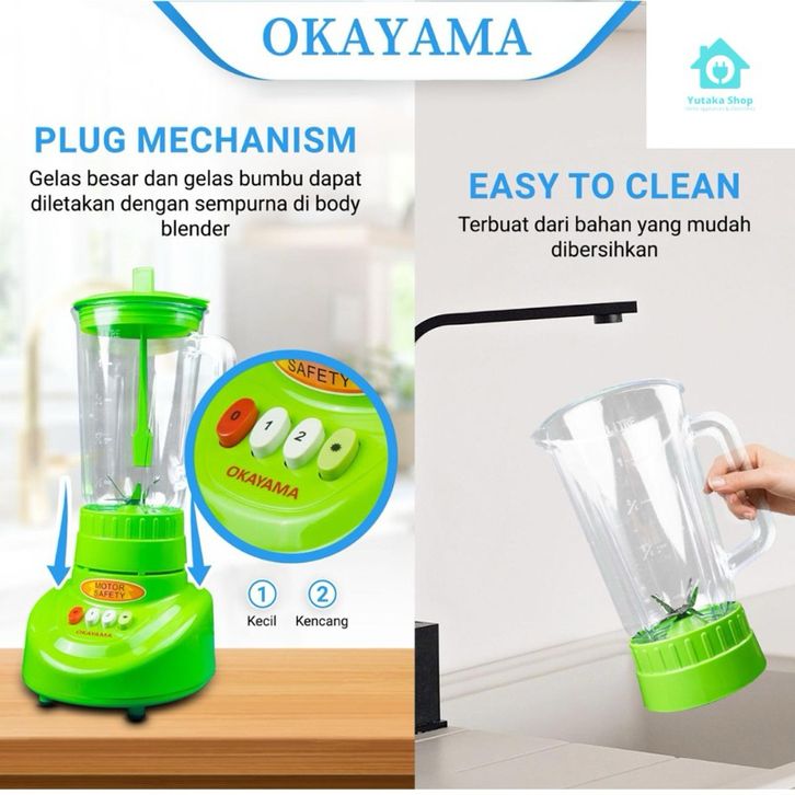 BLENDER OKAYAMA 3 IN 1 OK 355 1 LITER PLASTIK PORTABLE SET CHOPPER BUMBU JUS BUAH
