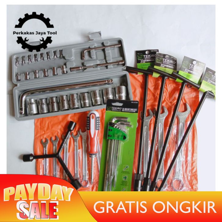 CICILAN/ PAKET KUNCI RING PAS SET + KUNCI SOK 27 PCS + KUNCI T TEKIRO + KUNCI L TEKIRO + KUNCI Y + OBENG