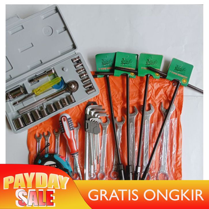 CICILAN/ KUNCI RING PAS SET + KUNCI L + OBENG BOLAK BALIK AMERIKA + KUNCI SOK SET + KUNCI T + METERAN