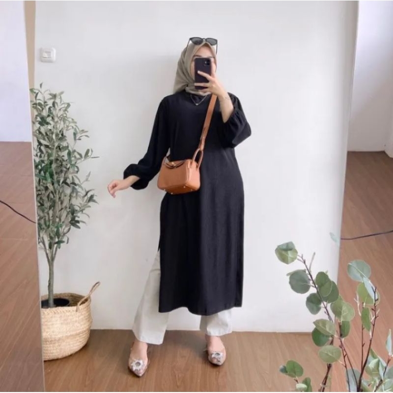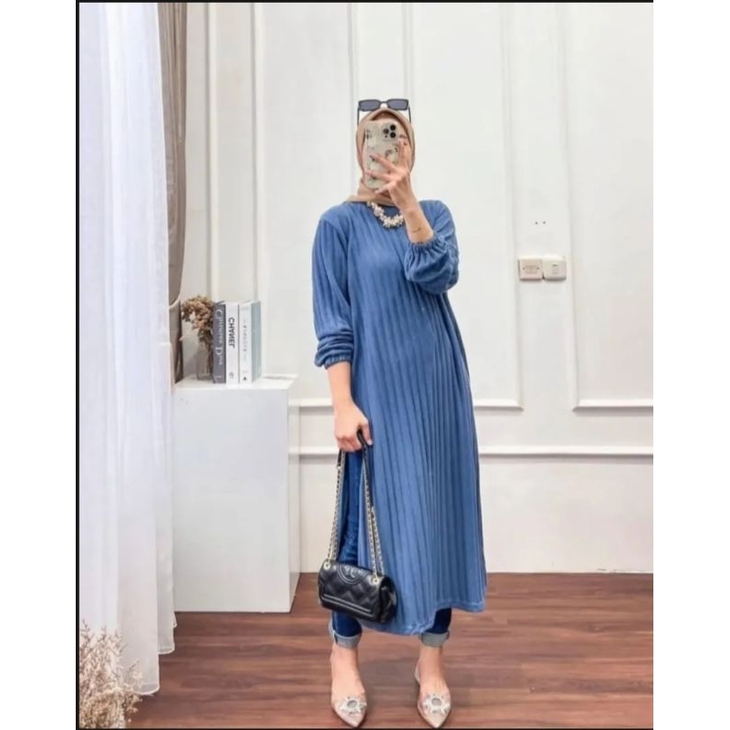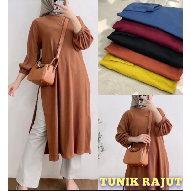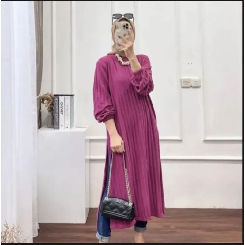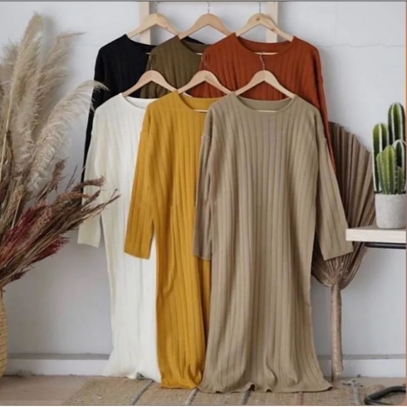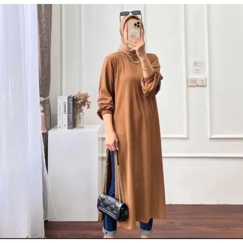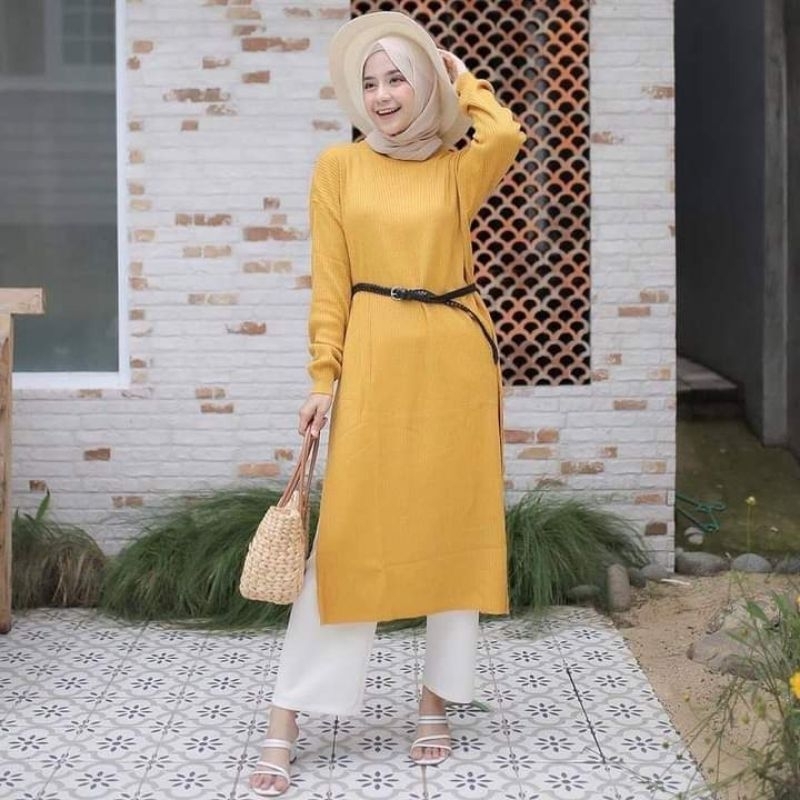 KIMIA LONG TUNIK JUMBO KNIT HORNET L XL XXL TUNIK KNIT RAJUT HALUS OOTD VIRAL MUSLIMAH DRESS