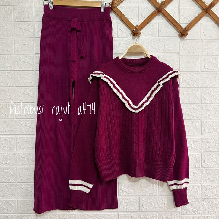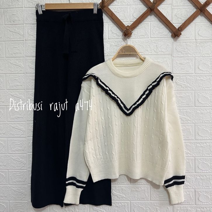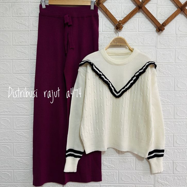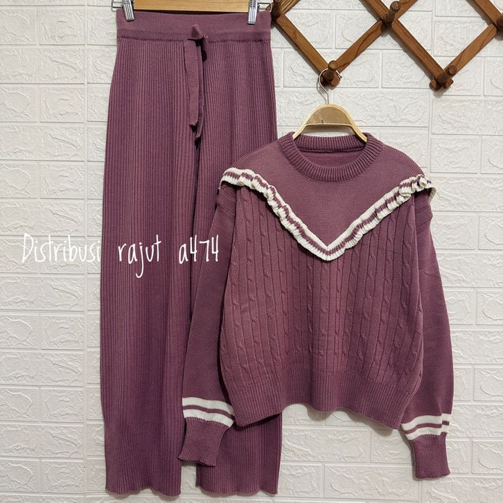 ONESET SWEATER RAJUT SAIRA SETELAN CELANA KULOT RAJUT WANITA