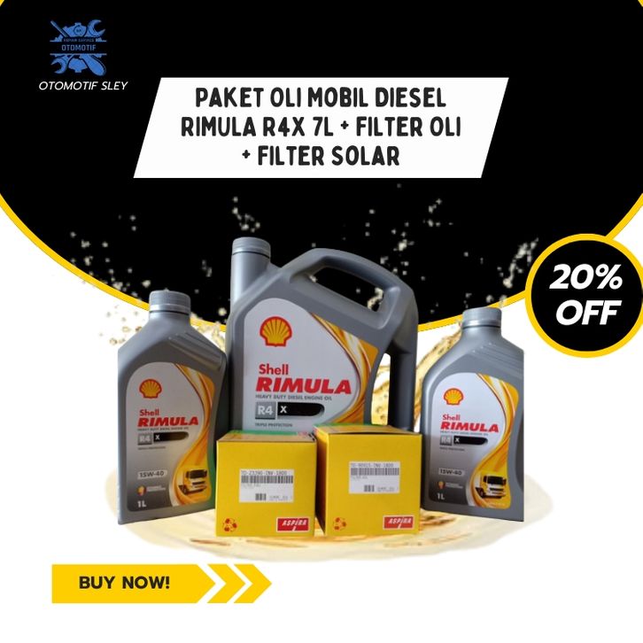 Paket Oli Shell / Paket Oli Mobil Diesel RIMULA R4X 7L + Filter Oli + Filter Solar Murah Original Terlaris