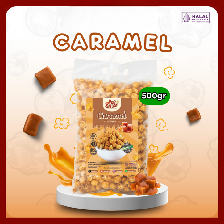 Popcorn Popenjoy [new] Caramel 500gr Snack Ringan Makanan Manis Crispy Camilan Popkron Snack Jagung Popcorn
