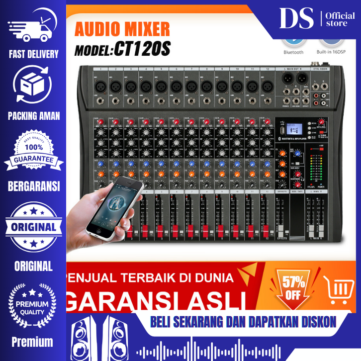 Mixer Audio CT120S Pengaduk Audio Profesional 12saluran mixer Efek gema bawaan Mendukung pemutaran Bluetooth/UBB/PC/MP3