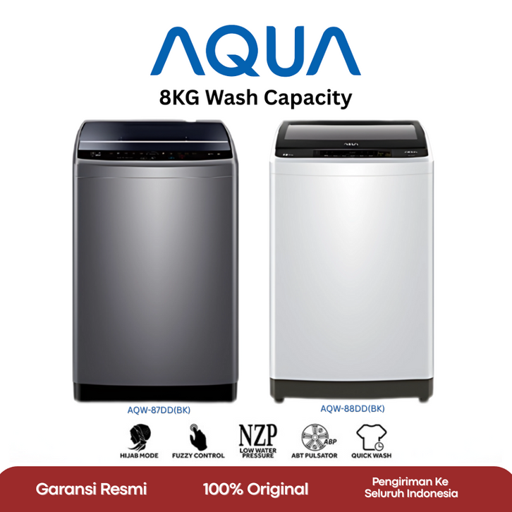MESIN CUCI AQUA TOP LOADING 1 TABUNG 8 7 KG AQW 88DD 87DD 77D HIJAB SERIES BUKAAN ATAS 8KG 7KG MURAH GARANSI RESMI