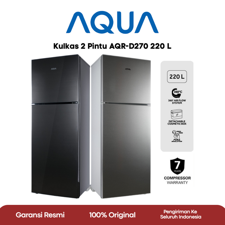 KULKAS AQUA 2 PINTU AQR D 270 220 LITER LEMARI ES LOW WATT FREEZER JUMBO REFRIGERATOR KAPASITAS BESAR TANPA BUNGA ES