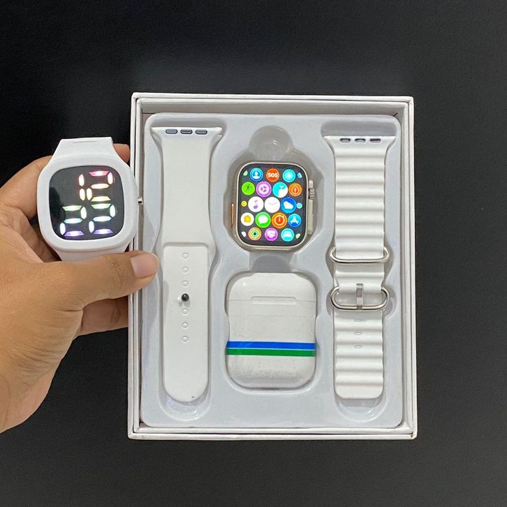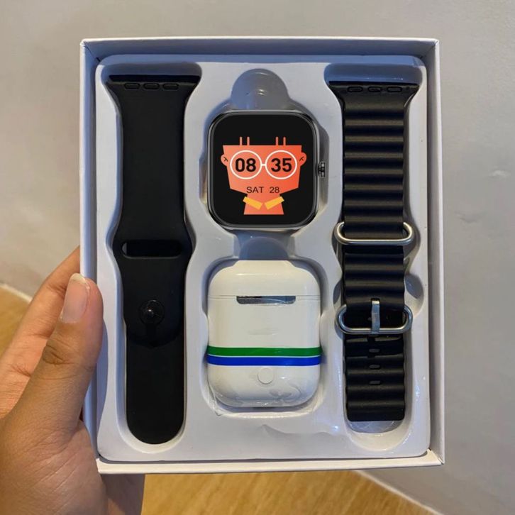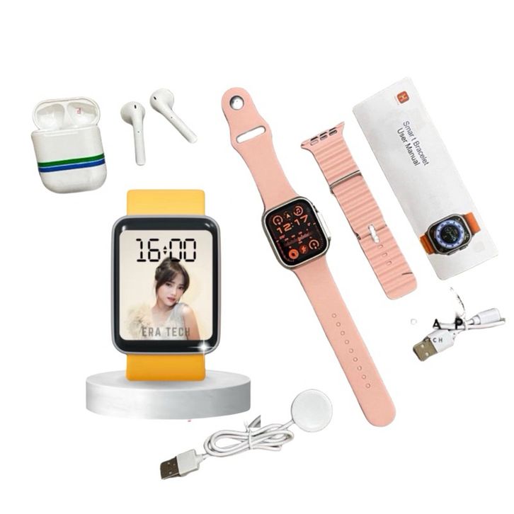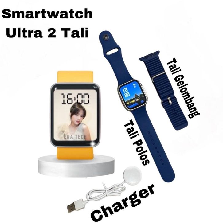 SmartWatch Samsung Ultra 8 Wanita Pria Jam Tngan Pintar Bluetooth Dapat 2 Tali+Tws Earphone Layar Full Screen Amoled
