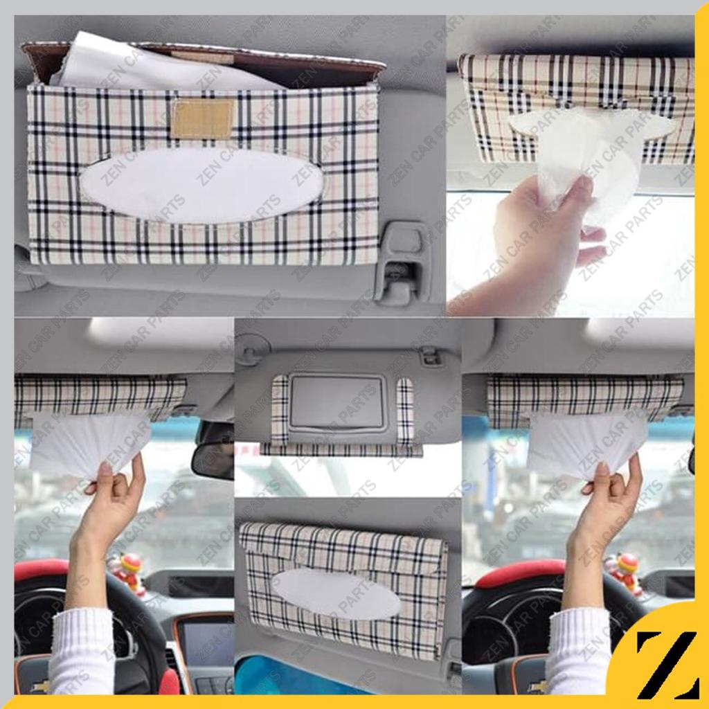 TEMPAT TISSUE MOBIL MOTIF KOTAK BURBERRY JEPIT SUNVISOR CREAM