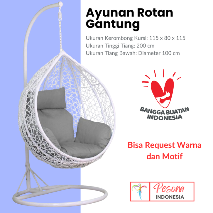 Ayunan Gantung Rotan Dewasa Jumbo Model Pear Pir Murah Kayu Pohon Sintetis Tiang Besi