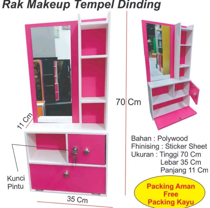 (GRATIS ONGKIR) Rak Cermin Makeup Ukuran 70 x 35 Cm Rak Gantung Dinding