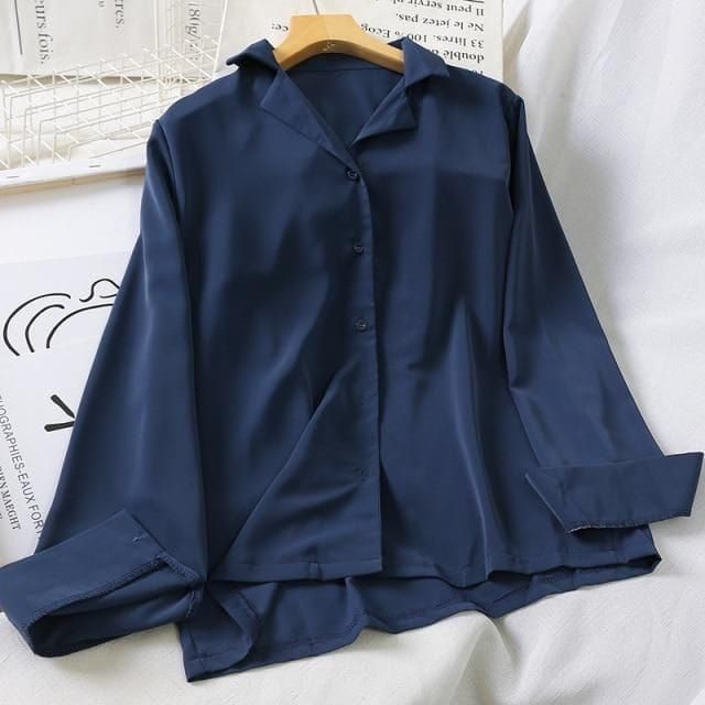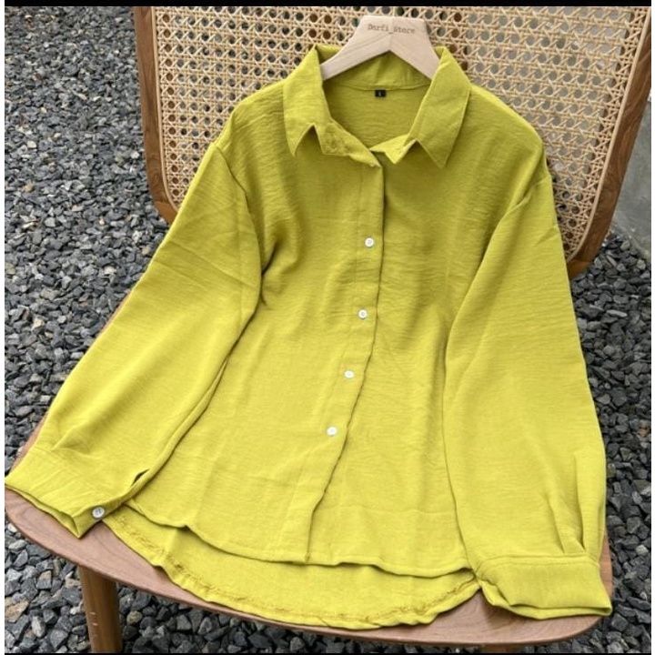 KAMEJA CRINKLE ATASAN WANITA AIRFLOW LENGAN PANJANG KAMEJA POLOS