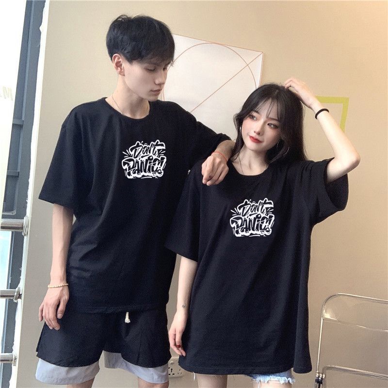 BAJU KAOS DISTRO COUPLE DONT PANIC COWOK CEWEK KATUN COMBED ORIGINAL