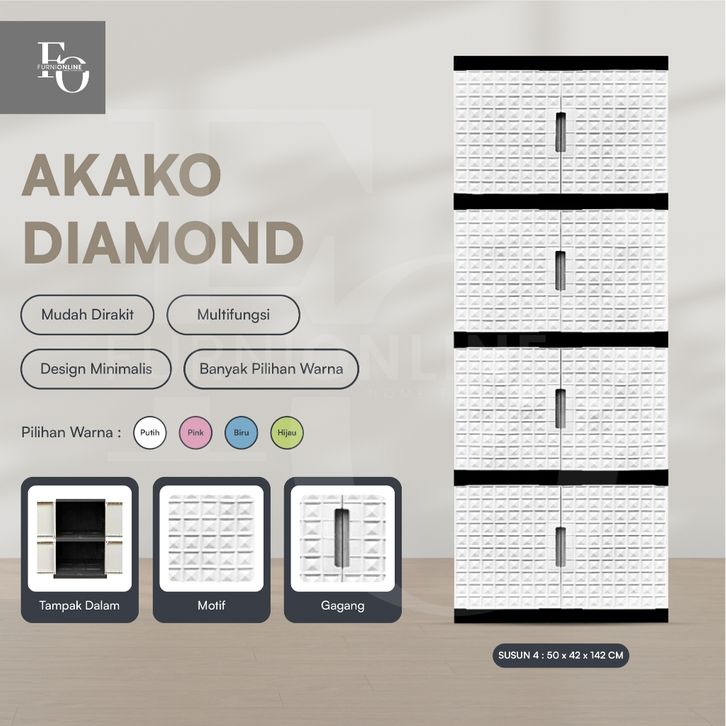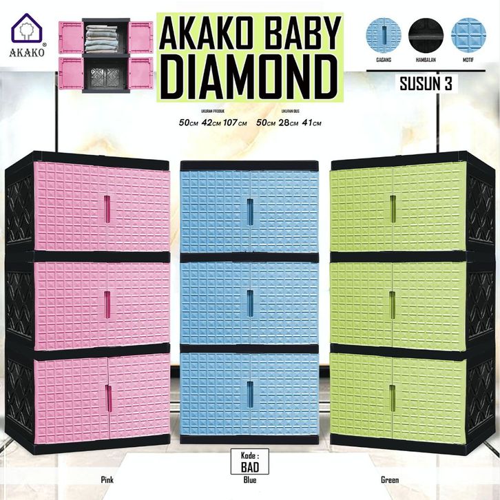Akako - Lemari Jumbo Baby Pakaian Plastik 2 Pintu Susun 2, 3, 4, Dan 5 Rotan/diamond + Kaca Bilpin