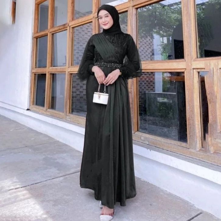 Gamis Pesta Mewah ADEVA Dress Busui Gamis Pesta Mewah Ceruty Mix Brukat Dress Gamis Pesta