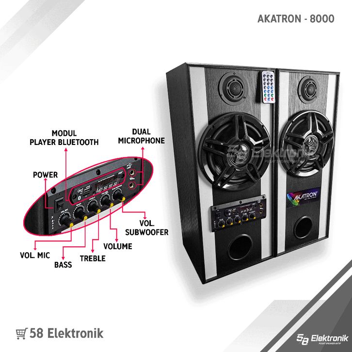 [Mall] SPEAKER AKTIF BLUETOOTH KARAOKE | AKATRON 8000 - 8 INCHI DOUBLE SUBWOOFER BASS | SUARA KENCANG | BEST SELLER