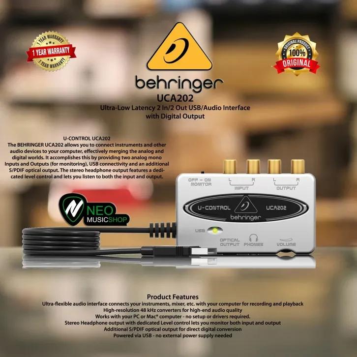 Behringer UCA202 Ultra-Low Latency 2 In/2 Out USB/Audio Interface