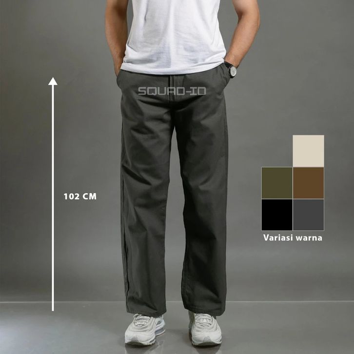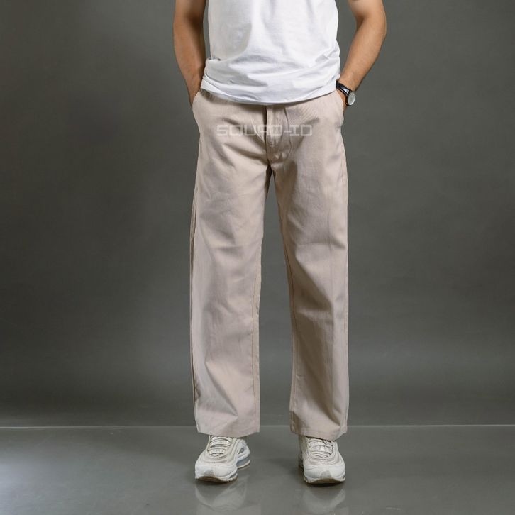 Celana Pria Chino Reguler Standar Straight Fit Loose Baggy Kombor Cotton Canvas Asli Non Stretch