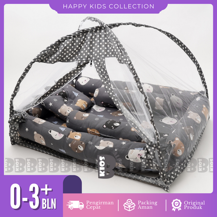 KASUR BANTAL KELAMBU BAYI SET LENGKAP FREE BANTAL PEYANG CROWN + 2 GULING BABY