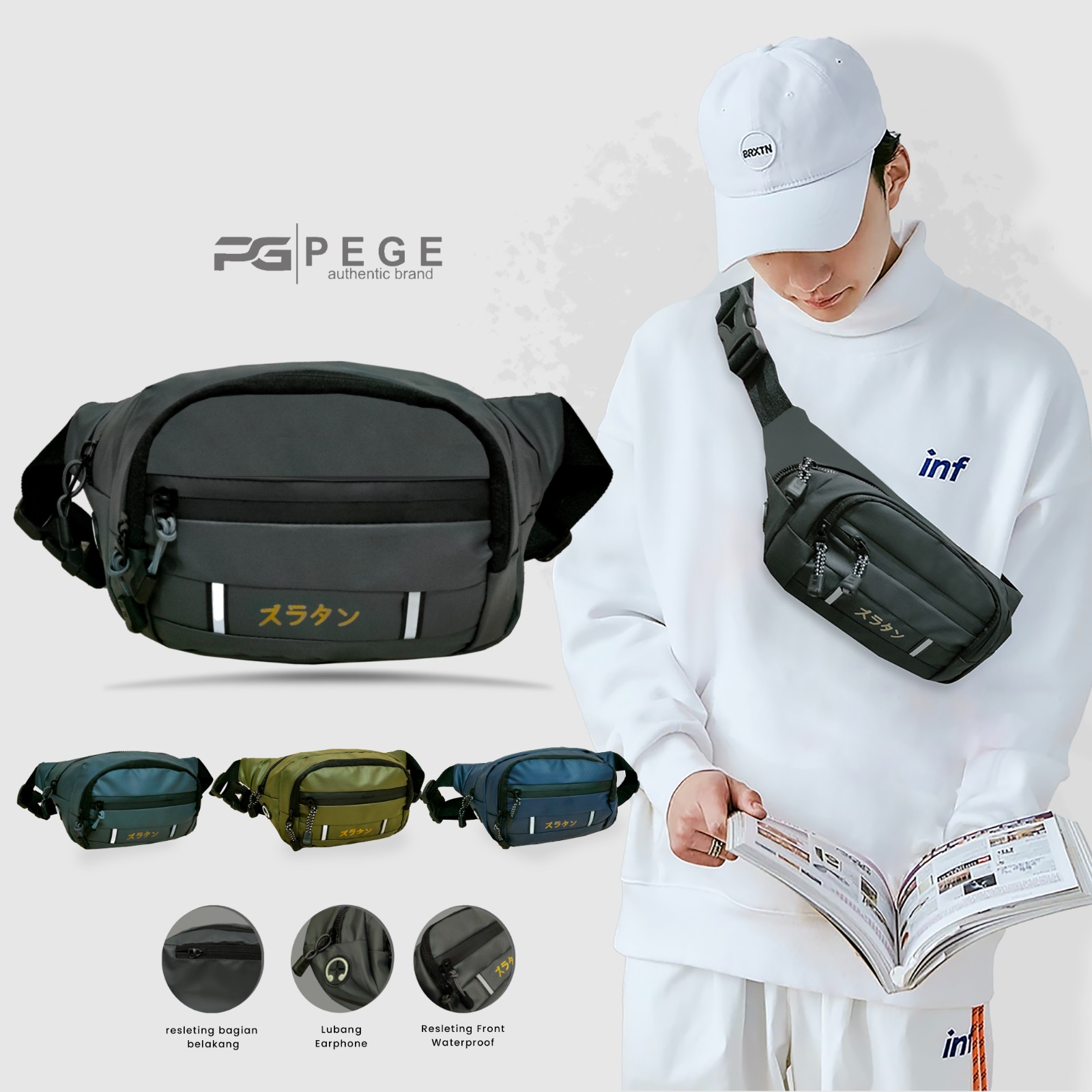 Tas Selempang Pria Pege Paxton Slempang Original Bahan Waterproof Slingbag Kasual - PG 8974
