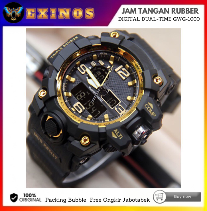 JAM TANGAN PRIA ANTI AIR RUBBER DIGITAL DUAL-TIME GWG-1000 [ FREE ONGKIR JABOTABEK ]
