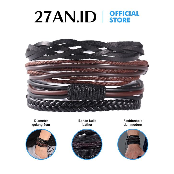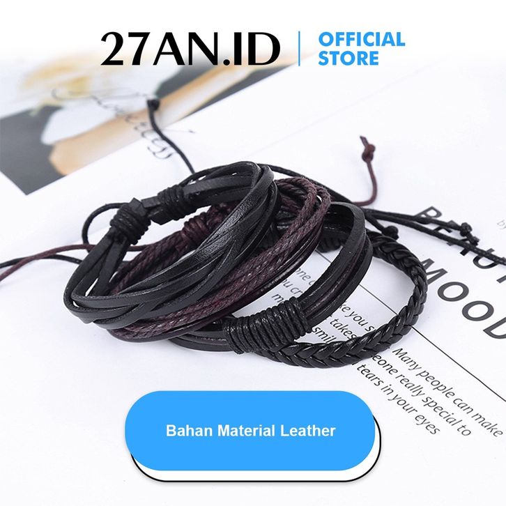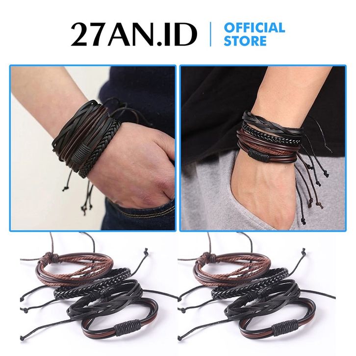 Gelang Tangan Pria ISI 4PCS Strap Kulit Gaya Retro