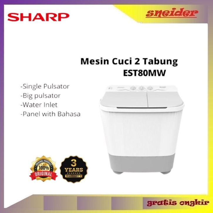 SHARP MESIN CUCI 2 TABUNG ES-T80MW / EST 80MW 8KG / EST 70MW/ EST70MW 7KG