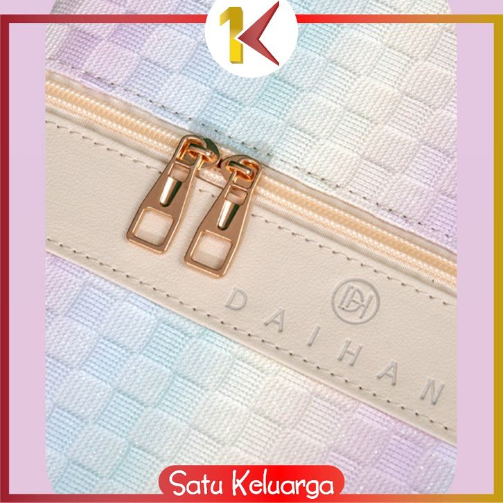 SK-K156 Box Make Up Tas Kosmetik Portable Motif Gradasi Case Makeup 2 Tingkat / Beauty Case Makeup Box Model Anyaman
