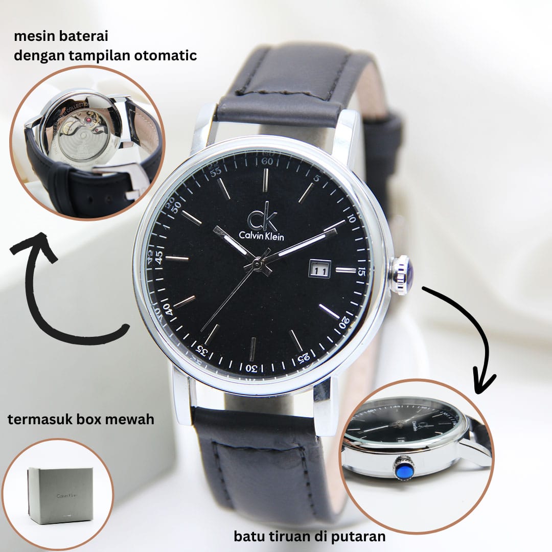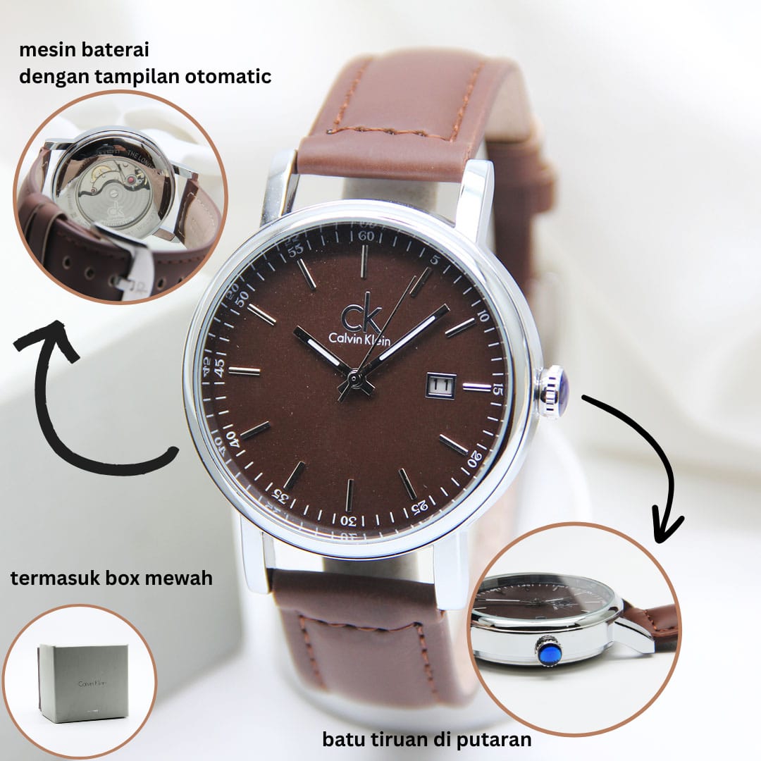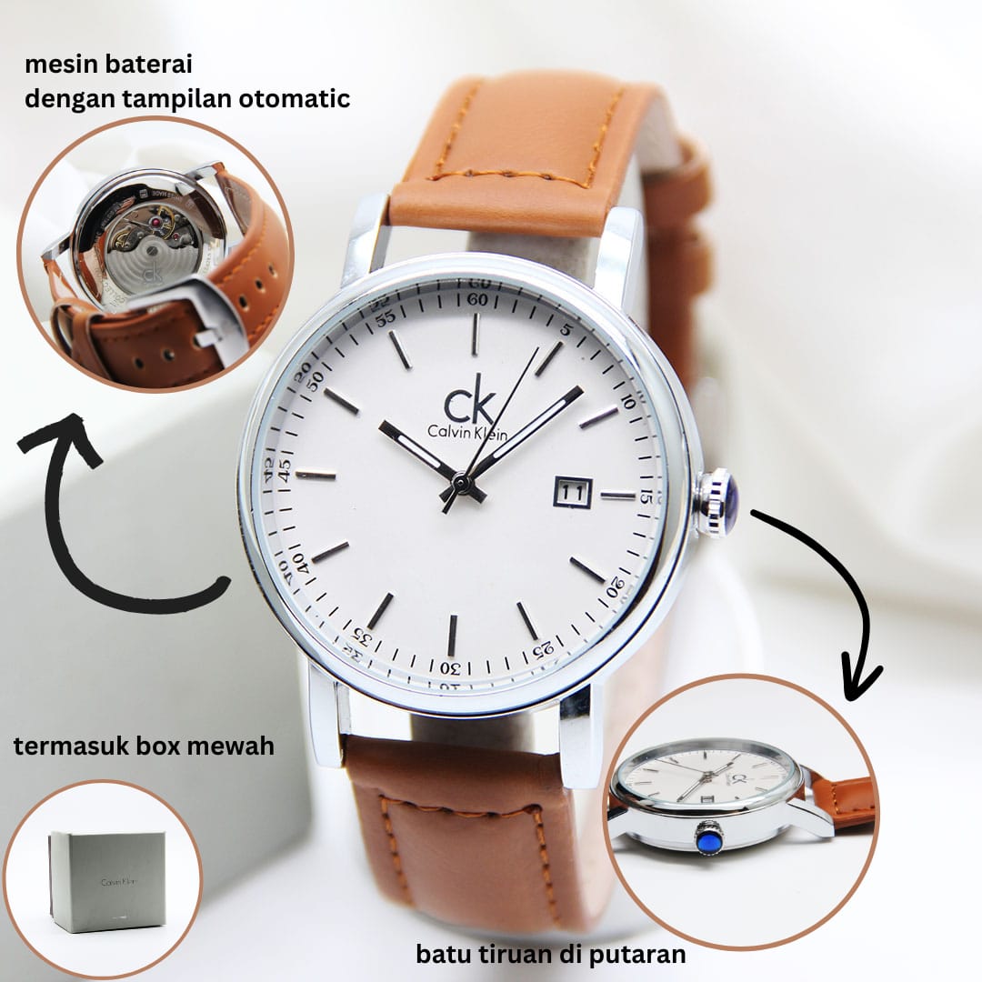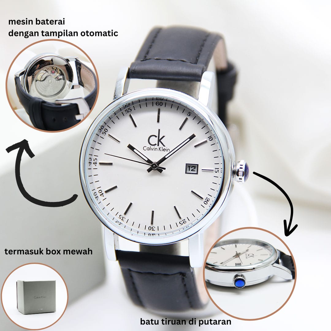 FREE ONGKIR - Jam Tangan Wanita Calvin Klein / CK 6958AJ Tanggal Aktif Tali Kulit Free Box Original & Baterai Cadangan