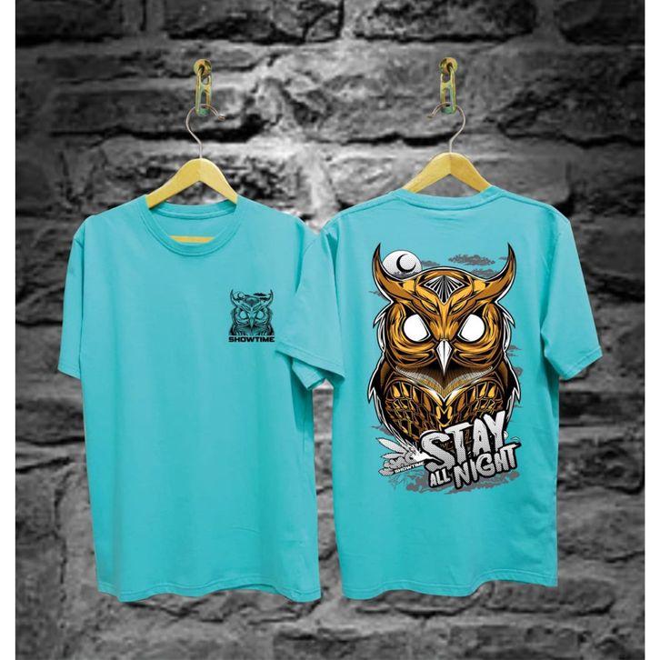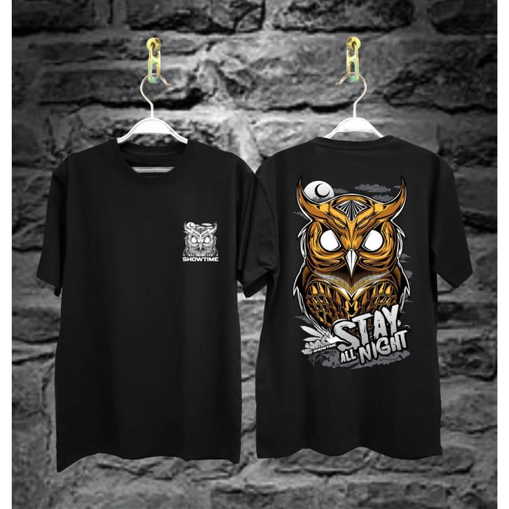 Baju Kaos Tshirt Distro Pria Cowok Lengan Pendek Terbaru Motif Burung Hantu Owl Stay All Night Variasi Sablon Bergambar