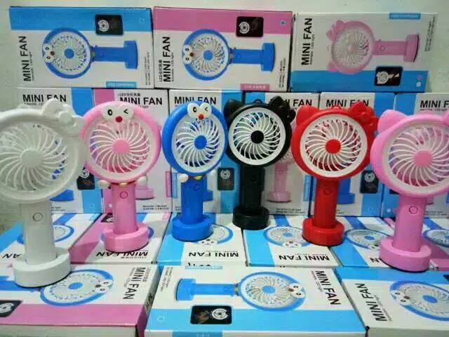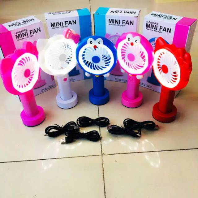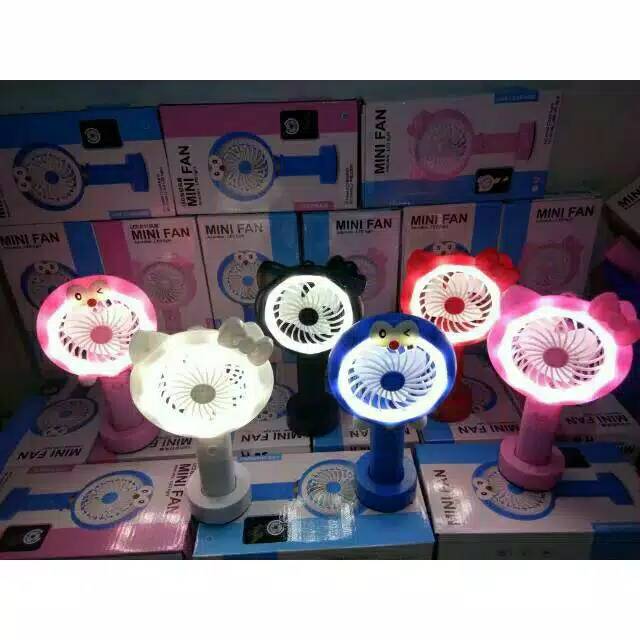 KIPAS MINI LED TANGAN USB PORTABLE CHARGER / MINI FAN L3D LIGHT / KIPAS MINI DORAEMON HELLO KITTY