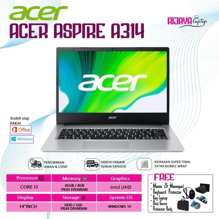 [✔️LANGSUNG KIRIM✔] LAPTOP ACER A314/A315/A515/A311/SF314 Core i3 RAM 8GB HDD 1TB/SSD 512GB WINDOWS 10 FREE TAS LAPTOP-